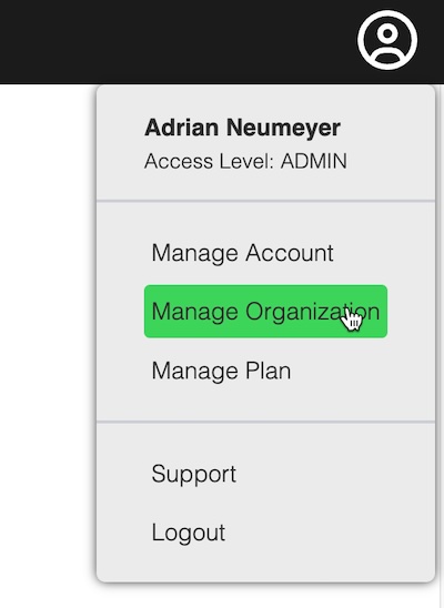 Choose Manage Organization from the account menu on the right.