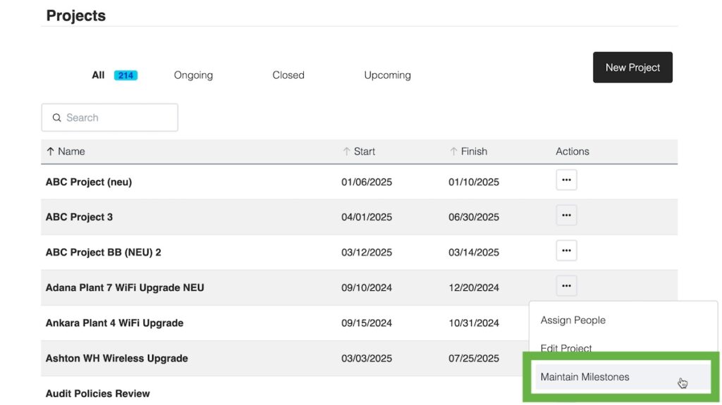 Go to the action menu for the project, and choose Maintain Milestones: