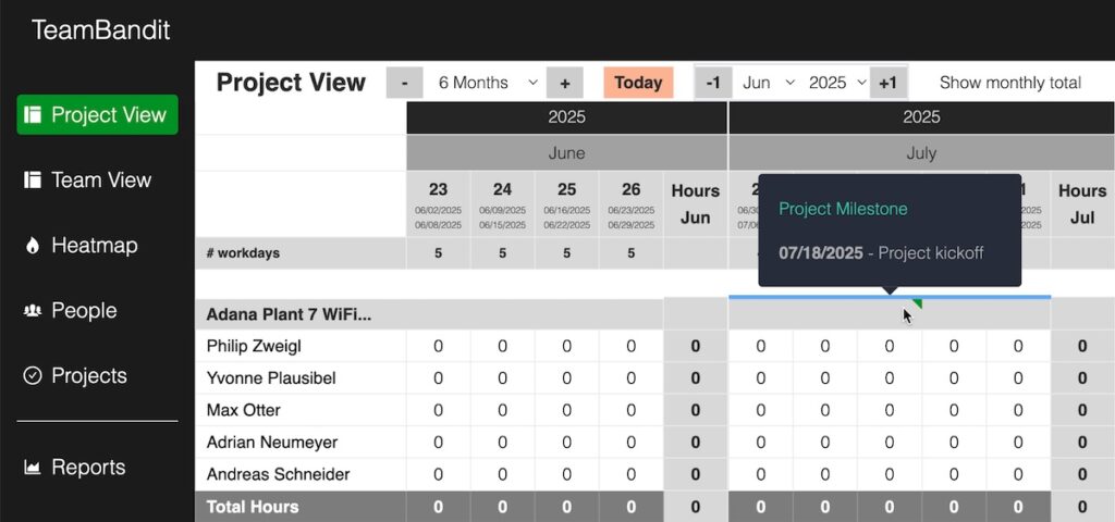 Caperity lets you add project milestones so they will be shown on the main planning views.