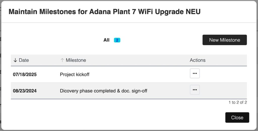 In the dialog window, you can add, modify or delete milestones for your project.
