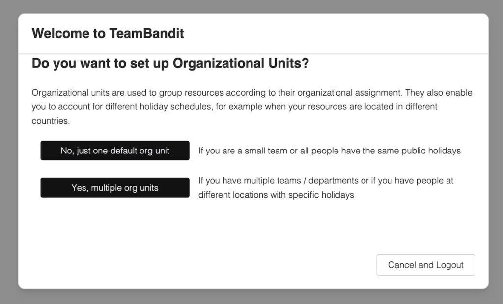 Choose Just one org unit if your team works from one office and follows the same holiday schedule.