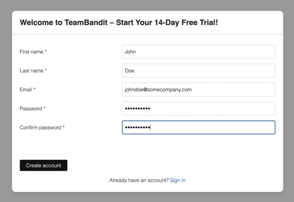 This will create the initial account for your organization. You will have full Administrator privileges. This includes the permission to change or cancel your subscription.